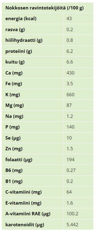 kalsiumia on runsaasti, joten nokkonen sopii kalsiumin lähteeksi myös kasvisruokavalioon.