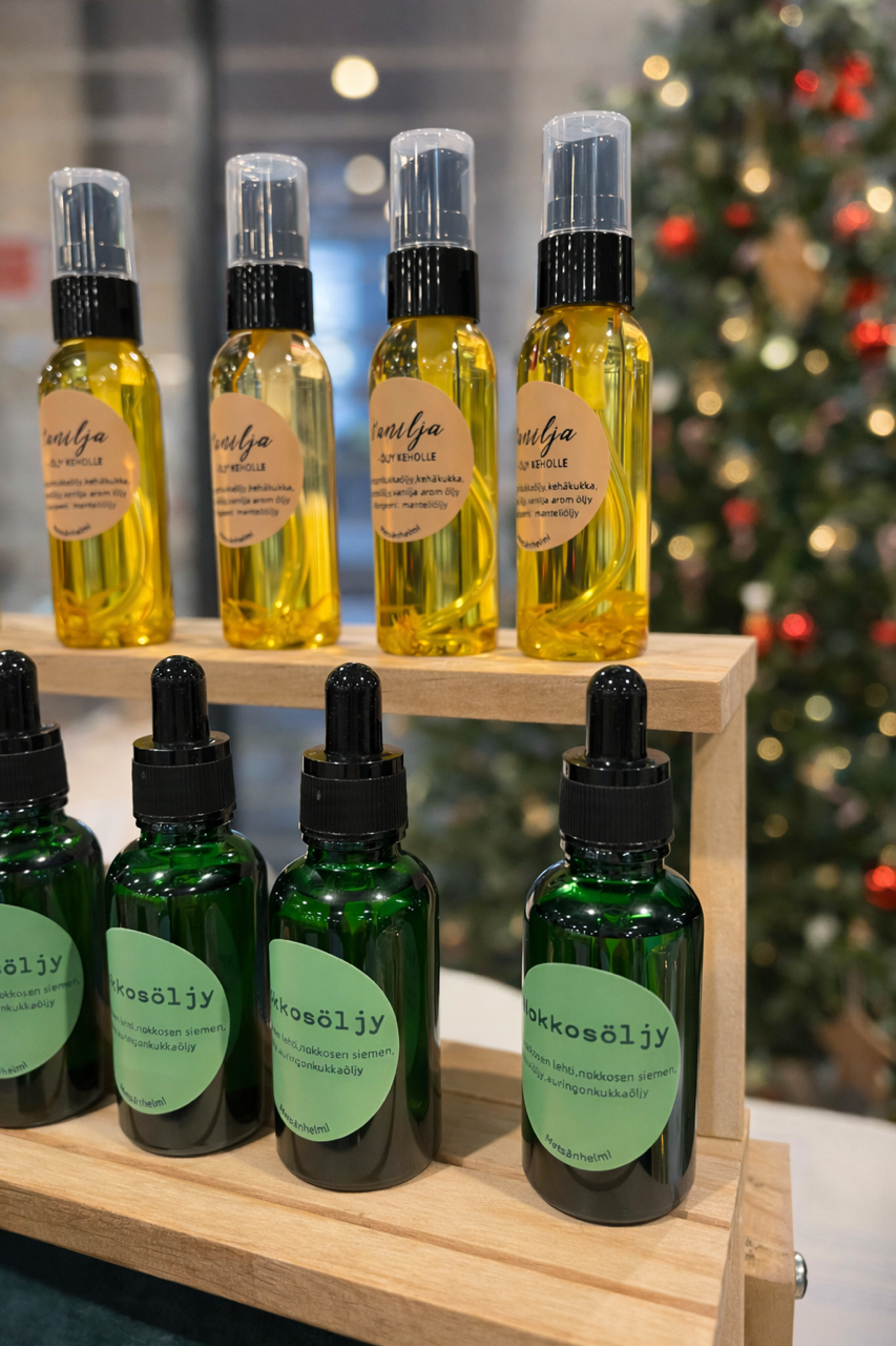 Nokkonen verenkiertoa edistämään, humala ihoa hoitamaan.Ei alle 10-v lapselle lähelle hengitysteitä (eukalyptuksen raja-arvot lapsille)
