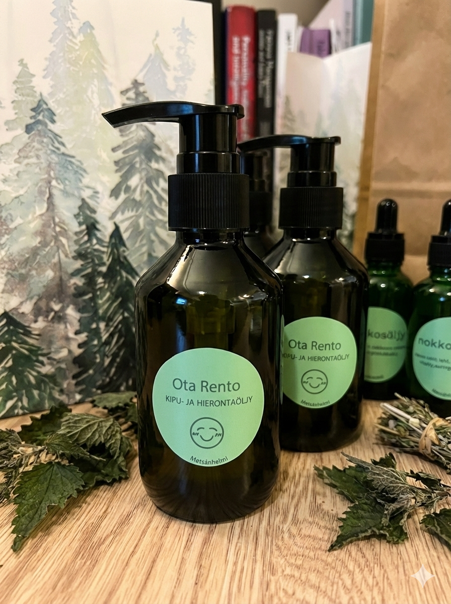 OTA RENTO yrttiöljy hierontaan tai kipuun pullo 200ml hinta 15e